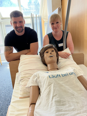 Mit einem LernAtelier, einem eigens konzipierten Lernzimmer mit Pflegeausstattung und moderner Pflegepuppe, können pflegerische Tätigkeiten praxisnah geübt werden. Pflegepuppe Heidrun verzeiht, wenn es beim ersten Mal des Nadelsetzens nicht funktioniert.
