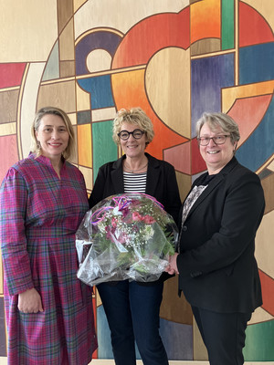 Bildunterschrift (v.l.n.r.): Staffelstabübergabe von Szerénke Darabpour, Einrichtungsleitung AGAPLESION HAUS SAALBURG, an Carolin-Babett Erler, neue Einrichtungsleitung AGAPLESION OBERIN MARTHA KELLER HAUS, mit Hannelore Rexroth, Geschäftsführerin AGAPLESION MARKUS DIAKONIE gGmbH. Bildrechte: AGAPLESION MARKUS DIAKONIE